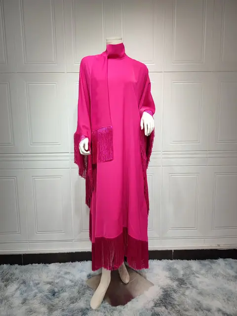 Be the first to review “Moroccan Kaftan Batwing Sleeve Tassels Trimming Dubai Luxury Dress for Women Evening Party Gulf Abaya Ramadan Muslim Gown Hijabi”