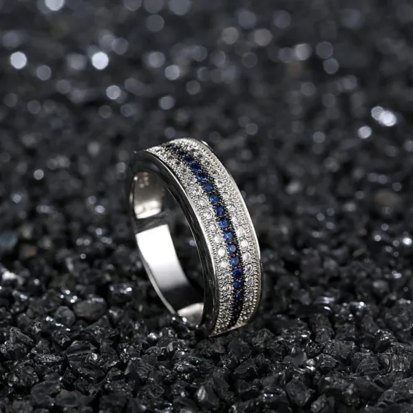 925 Sterling Silver Ring with Round Sapphire Zircon Gemstone Fine Jewelry ring for Women Wedding Party Gift wholesale