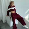 Fashion  Casual Sport Set Zip-Up Hoodie and Long Pants Two-Piece Set for Women