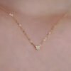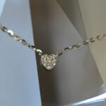 S925 pure silver plated with 14K gold mini heart necklace women's diamond studded peach heart extremely fine collarbone chain