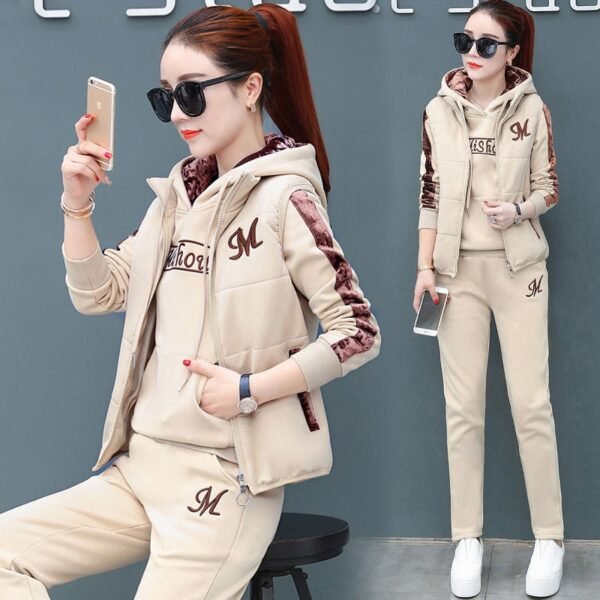 Women Suit Tracksuit Winter 3 Piece Set Hoodies+Vest+Pants Casual Suit Plus Velvet Warm Sporting Women's Suits Female Clothes