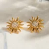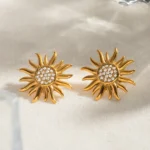 Stainless steel sunflower jewelry flower earrings for women