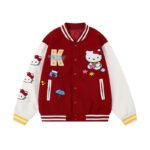 Flocked Embroidery Baseball Jacket Drop Shoulder Loose Fit Jacket Coat