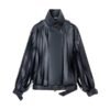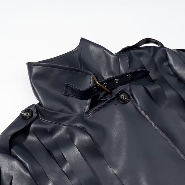 High neck long sleeved flowing suede jacket