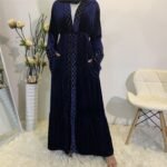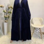 The Golden Velvet Gilded Muslim Cardigan Robe exudes elegance and luxury with its rich blue velvet fabric and subtle gilded accents. Made from soft 95% cotton, it offers both comfort and sophistication for modest yet stylish wear. Perfect for special occasions or refined everyday use, this robe combines timeless design with modern grace. Available in sizes S to 2XL, it ensures a comfortable and flattering fit for all. A versatile wardrobe staple, it brings a touch of glamour to any ensemble.